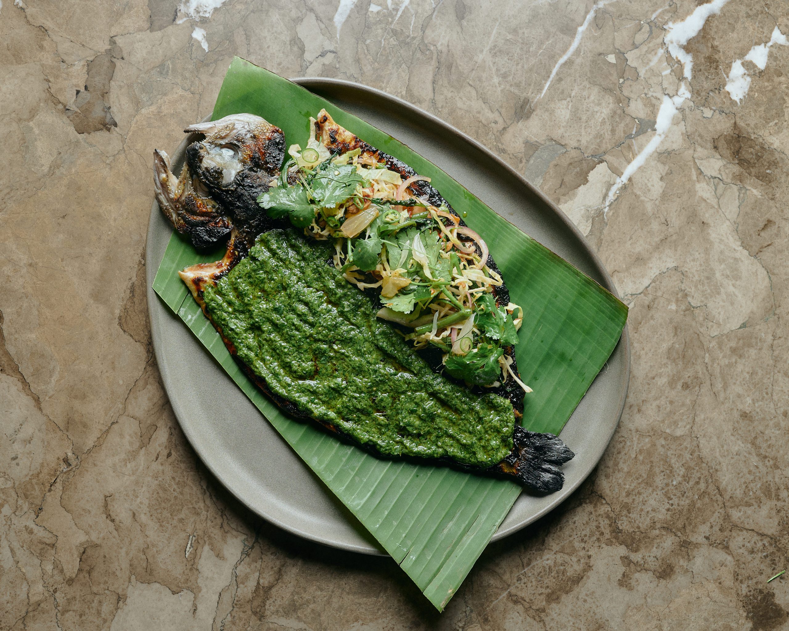 Native green sambal, shredded cabbage, kang kong, calamansi, nahm jim